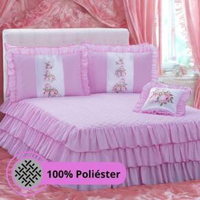 Jogo De Colcha Casal Sofia Rosa Com Babados