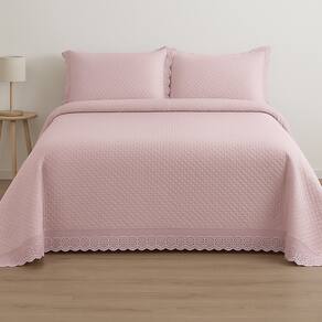 Jogo De Colcha Com Renda Paradis Queen 240x260cm Rosa -