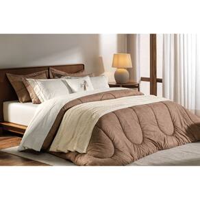 -Jogo de colcha dupla face com tratamento termobond e cantos quadrados;