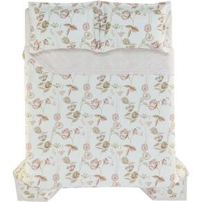 -Jogo de colcha dupla face com tratamento termobond e cantos quadrados;