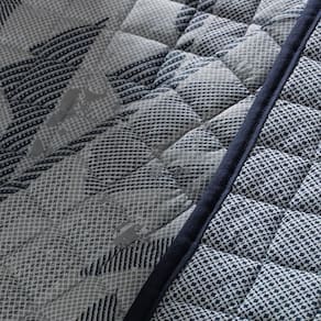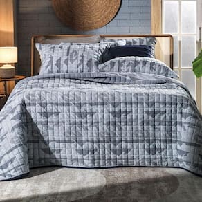 A estampa traz um design geométrico moderno em tons de azul, perfeita para quem busca sofisticação e personalidade na decoração do quarto. Produzida em puro algodão, garante conforto e maciez em todas as peças, oferecendo bem-estar em cada detalhe. O edredom conta com enchimento em poliéster thermobonder, proporcionando aconchego e durabilidade. Já o jogo de colcha apresenta acabamento em viés e porta-travesseiro com abas de 4cm, além de matelassado quadriculado que confere elegância extra. Os jogos de cama completos incluem lençol superior com dobra feita, lençol inferior com elástico de 40cm de altura para perfeito ajuste em colchões queen e king, e fronhas envelope com viés em rolotê. Também disponível na versão simples, com lençol de elástico e fronhas sem abas, essa linha une praticidade e estilo, permitindo composições versáteis e contemporâneas.