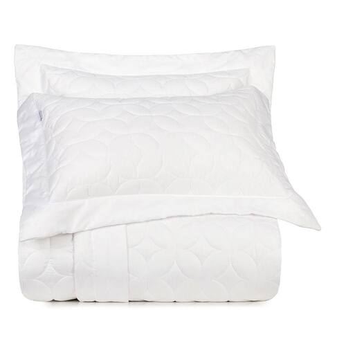 Confeccionado em tecido de puro algodão Cetim 300 fios, o Jogo de Colcha Bordados Cetim 300 fios é ideal para quem preza pela extrema maciez, beleza e conforto na hora de compor o enxoval. O tecido 300 fios possui um brilho deslumbrante, além de ser aconchegante e proporcionar uma sensação única em contato com a pele. A delicada aplicação dos matelassados no corpo da Colcha e dos Portas Travesseiros, traz um charme e elegância sem igual para as peças.