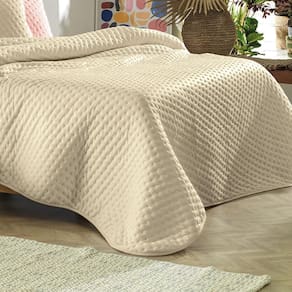 Esta colcha foi confeccionada com tecido de alta qualidade e um acabamento impecável, garantindo durabilidade, maciez e conforto. A cor bege neutra e versátil proporciona um visual atemporal e sofisticado ao seu ambiente, permitindo combinações harmoniosas com diferentes estilos de decoração.