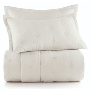 1 Colcha Tamanho: 2,80m x 2,60m 1 Porta Travesseiro Tamanho: 50cm x 70cm com 3 abas de 4cm nas laterais