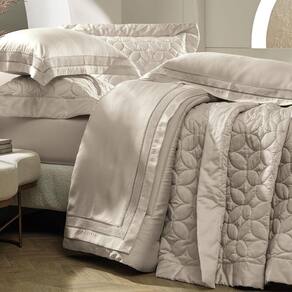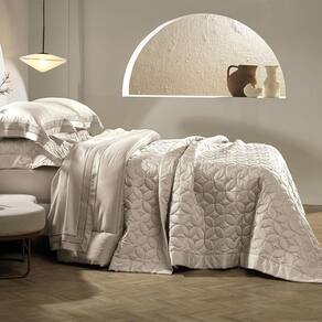 Confeccionado com o mais puro algodão, a suavidade excepcional e o brilho sereno do cetim proporcionam uma experiência tátil luxuosa. Os detalhes matelassados, delicadamente desenhados, adicionam uma camada de textura que transforma a colcha em uma peça única, revelando um cuidado artesanal excepcional.