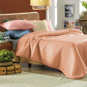 Renove a atmosfera do seu quarto com o Jogo de Colcha Malharia Sem Igual na cor laranja e desfrute de um ambiente acolhedor e cheio de estilo todos os dias.