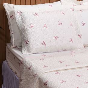 O Jogo de Colcha Queen Lacinhos, traz a textura suave, uma costura que forma uma padronagem em relevo. Ela é leve, altamente macia ao toque. Além de proteger a roupa de cama no dia a dia, as colchas podem ser combinadas com outros acessórios de cama, cores e tecidos.