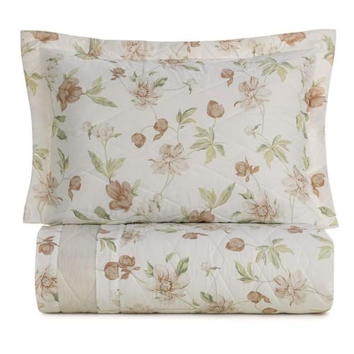 Jogo de Colcha Solteiro Eloise 200 Fios Karsten Jogo de Colcha Solteiro 200 Fios Karsten O jogo de colcha Eloise combina leveza e riqueza de detalhes em uma composição encantadora. Com estampa de pássaros e flores em tons de salmão e verde, transmite frescor e delicadeza. A colcha é dupla face: de um lado, a estampa floral suave; do outro, o mesmo padrão geométrico espaçado do jogo de cama, criando equilíbrio visual e sofisticação. O porta-travesseiro matelassado seguem o mesmo conceito, completando a composição com harmonia. Contém:1 Colcha dupla face. Tamanho: 1,80m x 2,60m1 Porta Travesseiro com 3 abas de 5cm. Tamanho: 50cm x 70cm Material: 200 fios, 100% algodão, Enchimento 100% PoliésterEstampa: EloiseMarca: Karsten Marca: Não Informado Ean: 7909156172025