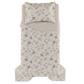 Jogo de Colcha Solteiro 200 Fios Karsten O jogo de colcha Eloise combina leveza e riqueza de detalhes em uma composição encantadora. Com estampa de pássaros e flores em tons de salmão e verde, transmite frescor e delicadeza. A colcha é dupla face: de um lado, a estampa floral suave; do outro, o mesmo padrão geométrico espaçado do jogo de cama, criando equilíbrio visual e sofisticação. O porta-travesseiro matelassado seguem o mesmo conceito, completando a composição com harmonia. Contém:1 Colcha dupla face. Tamanho: 1,80m x 2,60m1 Porta Travesseiro com 3 abas de 5cm. Tamanho: 50cm x 70cm Material: 200 fios, 100% algodão, Enchimento 100% PoliésterEstampa: EloiseMarca: Karsten