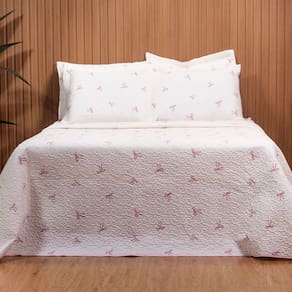 O Jogo de Colcha Solteiro Lacinhos, traz a textura suave, uma costura que forma uma padronagem em relevo. Ela é leve, altamente macia ao toque. Além de proteger a roupa de cama no dia a dia, as colchas podem ser combinadas com outros acessórios de cama, cores e tecidos.