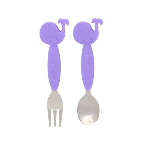 Jogo de Colher e Garfo Cabo em Silicone Baleia Roxa - MarcusMarcus