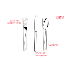 Com peças robustas e imponentes, a linha de talheres Gourmet traz sofisticação à mesa por um ótimo custo-benefício. A colher de sobremesa é perfeita para servir mousses, cremes e outras delícias após a refeição. A estrutura e o cabo em aço inox superpolido tornam a peça altamente durável e resistente, não correndo risco de oxidar e podendo inclusive ir à máquina de lavar louça. Outro diferencial é o revestimento temperado que não deixa a faca arranhar o prato. De fabricação 100% nacional, os produtos da linha Gourmet aliam qualidade, beleza e preço justo. Este conjunto contém 12 peças.