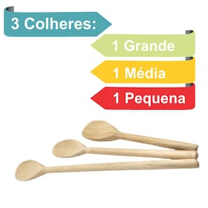 Conjunto de 3 colheres de madeira, é bastante durável, tem forma oval e de cor clara, esta colher é perfeita para panelas com teflon pois não arranham.