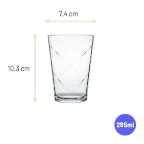- Marca: Nadir; - Referência: 111823-1; - Linha: Maracatu; - Material do produto: Vidro cristalino transparente; - Capacidade de cada copo: 265 ml; - Conteúdo da Embalagem: 6 Copos; - 100% Higiênico; - Vai à Lava-Louças; - São perfeitos para servir uma variedade de bebidas, desde água fresca até sucos, refrigerantes e coquetéis refrescantes; - Sua capacidade generosa e formato ergonômico garantem conforto ao segurar e apreciar suas bebidas; - Desperte a curiosidade e a admiração de seus convidados com esses copos exclusivos.