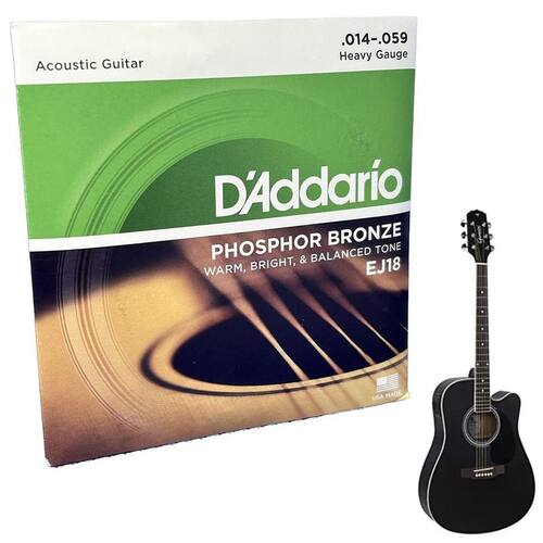 - Modelo EJ 18 - Phosphor Bronze - Tensão .014 - Heavy Pesada Alta - Contém 6 cordas em aço - Presas com bolinhas Marca: Daddario (Original)