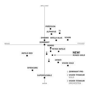 Estas cordas reagem instantaneamente aos movimentos do arco e suportam uma forte pressão do mesmo, mesmo em velocidades mais lentas. Isso permite aos músicos esculpir um som focado dentro de uma ampla gama de dinâmicas, proporcionando uma projeção suave e poderosa.