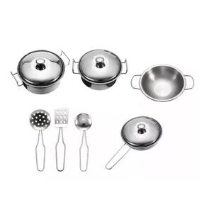 ESPECIFICAÇÕES: - Composição / Material: Inox - Recomendando a partir de 04 anos - Dimensões da embalagem: 44 (comprimento) x 5,2 (largura) x 30,3cm (altura) - Diâmetro das panelas: 10cm - Contém: 10 peças - Certificado de Segurança Inmetro 000912/2022