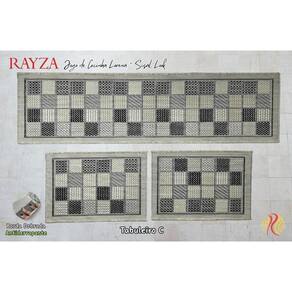 O jogo de cozinha lorena sisal look combina sofisticação, durabilidade e ótimo custo-benefício. Produzido com fios especiais, possui característica hidrófila que inibe a formação de fungos e bactérias, além de superfície lavável e resistente a manchas, facilitando a manutenção.O acabamento refinado traz laterais em overloque e barra dobrada nas pontas, garantindo maior durabilidade e fixação. Com base antiderrapante, oferece segurança em áreas de alta circulação, evitando escorregões.Com design elegante e funcional, o jogo de cozinha sisal look valoriza a decoração e proporciona conforto no preparo das refeições, unindo beleza e praticidade.A rayza se destaca por sua tradição, inovação e alto padrão de qualidade. Investe em tecnologia, pesquisa e design para oferecer produtos que unem resistência, sofisticação e modernidade.Ficha técnicainformações técnicas para esse produtoprodutojogo de cozinha lorena sisal lookqualidadesisal jacquarddensidade320 pontos/mbatidas400 linhas/mloops m2256.000superfície100% polipropileno polisedamedidas2 peças 041x060cm + 1 peça 041x160cmbaseantiderrapanteFotos ilustrativas. Variações de cores podem ocorrer conforme o dispositivo. Marca: Não Informado