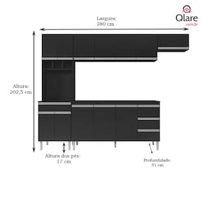 Balcão Andréia: (Altura x Largura x Profundidade): 80 x 155 x 51 cm.