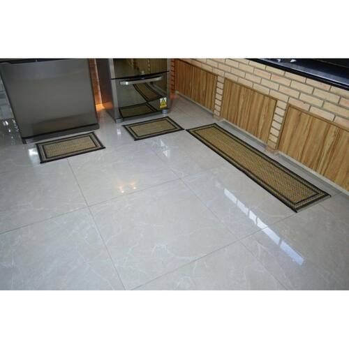 A rayza destaca-se pelo seu fino padrão de acabamento e por sua qualidade garantida. A alta qualidade dos produtos é obtida pelo aprimoramento contínuo das técnicas produtivas, qualidade das matérias primas e pela utilização de modernas tecnologias de produção. O jogo de cozinha sisal unique é um tapete com desenhos únicos, confeccionados com fios multifacetados, que representam até 46 variações de cores. imbatível em qualidade e possui excelente custo-benefício. O produto é lavável e não mancha, pois os fios possuem característica hidrófila que inibe a formação de fungos e bactérias mantendo seu tapete sempre conservado. Possui trama dupla e a tecnologia poliseda, proporcionando uma excelente estrutura e um toque macio. O tapete é antiderrapante e o acabamento feito em overloque nas laterais com barra dobrada nas pontas, o que torna o produto diferenciado com melhor fixação no piso. Ficha técnica informações técnicas para esse produto produto jogo de cozinha sisal unique qualidade sisal jacquard densidade 320 pontos/m batidas 400 linhas/m loops m2 256.000 superfície 100% polipropileno poliseda medidas 2 peças 041x060cm + 1 peça 041x160cm base antiderrapante Fotos ilustrativas. Variações de cores podem acontecer em diferentes aparelhos/equipamentos. Contraste e brilho são configurados de forma diferente em cada marca de smartphone, monitor e televisão.
