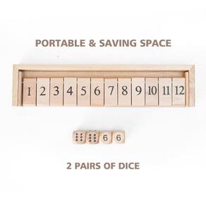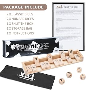 SHUT THE BOX é um jogo de dados divertido e rápido, fácil de jogar com qualquer pessoa que possa somar até doze, em qualquer lugar, a qualquer hora! POR EXEMPLO: Se o jogador tirar um e um seis, ele/ela pode escolher uma das seguintes opções: 7 6 e 1 5 e 2 4 e 3 4 e 2 e 1 Um número que é o valor combinado de ambos os dados; Dois ou três números cujo total se soma ao total combinado de cada dado. O jogo termina quando nenhuma opção pode ser escolhida, por exemplo, se os números 2 e 5 forem descobertos e um 4 for lançado, as opções são 4 ou 3 e 1, nenhum dos números está disponível - então a pontuação do jogador é 7, o jogador com a pontuação mais baixa vence! NOTA: Se você preferir a versão de 9 ou 10 números, ainda poderá se divertir jogando esta com a mesma facilidade. Simplesmente ignore as peças 10, 11 e 12. O jogador também pode definir regras diferentes para o jogo, não apenas adição, mas também subtração, divisão e multiplicação para melhorar a dificuldade do jogo. O PACOTE INCLUI: 1 * TABULEIRO DE JOGO 2 * DADOS CLÁSSICOS 2 * DADOS NUMÉRICOS 1 * BOLSA DE ARMAZENAMENTO 1 * INSTRUÇÕES Ótimo complemento para qualquer casa, sala de aula, férias ou qualquer outro lugar onde os jogos de tabuleiro sejam apreciados. - DIVERTIDO E FÁCIL - SHUT THE BOX O jogo de dados de 12 números começa com as peças numéricas viradas para cima e depois rola os dados, colocando as peças que somam o mesmo valor da jogada. O jogo termina quando derruba todas as peças ou não consegue colocar mais peças com base no valor da jogada, ganha a pontuação mais baixa! - Economiza espaço — A prancha de tamanho perfeito, compacta e prática, ocupa pouco espaço, com uma bolsa para guardar e instruções fáceis de seguir, que pode ser carregada em qualquer lugar, a qualquer hora! 2 dados clássicos e 2 dados numéricos para livre escolha de jogar no jogo. Com todos os itens prontos, você pode começar o jogo assim que conseguir. - JOGO DE MATEMÁTICA DE MESA - O jogo é, sem dúvida, uma ferramenta perfeita para ajudar as crianças a melhorar a matemática rápida, praticando habilidades como cálculo e títulos numéricos. Também é um ótimo item para exercícios cerebrais de idosos, ótimo complemento para sua sala de jogos. - Presente perfeito — Feitos de madeira de alta qualidade, resistente para uso prolongado, os ladrilhos numéricos são maiores e o número de lados duplos é grande e claro. Ótimo presente para netos, avós, adolescentes, adultos, perfeito para casa, sala de aula, festas, piqueniques, aniversários e bares. - SOBRE AS REGRAS - O jogador também pode definir regras diferentes para o jogo, não apenas adição, mas também subtração, divisão e multiplicação para melhorar a dificuldade do jogo. Use suas habilidades matemáticas e estratégicas para oferecer diversão sem fim!