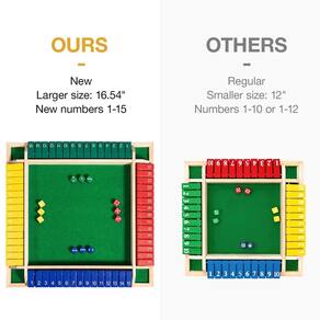 Descrição do produto: Cor: Multicolorido Material: madeira Peso do produto: 1,5 kg Tamanho do produto: 42 x 42 x 4,5 cm. Embalagem: 1 conjunto de jogo shut the box Idade recomendada pelo fabricante: acima de 6 anos Por que nos escolher? Tamanho super grande de 2,9 cm, melhor experiência e conforto. 2,1 a 4 jogadores, 15 peças digitais para atualizar a diversão do jogo. 3. Matéria-prima de madeira maciça, ecológica e durável. 4. Vem com manual de instruções e bolsa de armazenamento de dados, para que você possa jogar sem preocupações. 5. A BIVOMON promete: se você tiver alguma dúvida, responderemos imediatamente e resolveremos seus problemas 24 horas por dia Aviso: 1. Não lave com água. Limpe com um pano limpo. 2. Não o coloque onde crianças a partir de 3 anos possam vê-lo e pegá-lo para evitar comer acidentalmente. Vantagem: Jogos de tabuleiro educativos. Pensamento lógico. Melhore os relacionamentos Melhore a resposta. Capacidade matemática. Como brincar. Quando o jogo começa, todas as 15 peças de madeira numeradas são viradas. Os jogadores se revezam jogando os dados e virando as cartas numeradas de madeira correspondentes ao número total de dados. Quando alguém fecha a caixa (coloque todas as cartas numeradas) ou o jogador não coloca mais cartas de madeira numeradas, o jogo termina e as cartas de madeira numeradas restantes que não podem ser viradas são calculadas. O jogador com a menor pontuação ganha. - Jogo familiar atualizado – Shut The Box tem 15 peças digitais. Em comparação com 10 peças digitais, as 15 peças digitais têm mais combinações de números e a jogabilidade é mais emocionante e interessante. Adequado para 1-4 jogadores jogarem juntos, ensina matemática rápida através de competições amigáveis e oferece horas de entretenimento divertido para manter seu cérebro ocupado - Tamanho maior, conjunto de tabuleiro colorido – Tamanho 42 cm maior para o jogo de tabuleiro de madeira para 4 jogadores, feito de madeira maciça, 12 dados coloridos + 4 dados de madeira maciça, cobertos com feltro verde de superfície e rolos de dados para reduzir o ruído ao jogar jogos de tabuleiro. Os azulejos digitais em quatro cores diferentes são ricos em cores, duráveis, resistentes a riscos e fáceis de armazenar - Diversão para todas as idades – Regras simples do jogo e aproveite os momentos emocionantes do jogo Shut The Box Dice Game. Um jogo popular e ótimo para familiares e amigos de todas as idades, vem com instruções para que sua imaginação possa criar maneiras de jogar além das regras básicas fornecidas - Ferramentas de aprendizagem e práticas aritméticas – os jogos de unboxing são perfeitos para aprender operações de números, adequados para crianças e adultos em salas de aula, famílias, festas e atividades ao ar livre, cultivando as habilidades de pensamento lógico das crianças, não apenas criando uma atmosfera divertida, mas também aumentando a amizade dos jogadores entre eles. Ótima ferramenta para aprender adição, subtração, multiplicação e/ou divisão básica - Presente criativo e caixa de embalagem premium – o tabuleiro de jogo de dados é a melhor escolha para crianças e adultos a partir de 6 anos desfrutarem de jogos de azar e encontrar estratégias. Perfeito como presente de Natal, Ação de Graças, aniversário, Dia das Crianças e outros dias especiais. Também é perfeito para reuniões de família, piqueniques, aniversários, mesas de centro, festas e entretenimento no quintal. A caixa de embalagem elegante pode substituir diretamente a embalagem de presente para os amantes de jogos