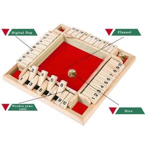 DC-BEAUTIFUL Conjunto de dados Shut The Box de madeira Material: madeira de pinho Tamanho: 8,9" x 8,9" x 0,6"/22,5 x 22,5 x 1,5 cm Lista de pacotes: 1 tabuleiro de jogo de madeira, 2 dados, 1 instrução Jogador recomendado: 2-4 jogadores Estilo: estratégico/educacional/emocionante Características do produto Material de alta qualidade Madeira de pinho premium, feltro confortável e verniz inofensivo, tornam o jogo de tabuleiro de dados de madeira adequado para adultos. Excelente artesanato Superfície lisa sem rebarbas, bordas e cantos polidos, à prova de umidade e durável. Detalhes atenciosos Base de placa equipada com feltro, reduz o ruído e evita arranhões. Bases antiderrapantes melhoram a estabilidade do jogo de dados ao jogar. Jogo de Estratégia e Matemática Role os dados e adicione os números, vire as cartas de números relevantes para obter a soma. Adicione, distraia, multiplique, divida, você pode usar qualquer matemática para obter a soma, desde que existam cartões numéricos disponíveis para você virar. Faça suas regras Você pode fazer suas regras para adicionar mais diversão ao jogar. Uma punição interessante tornará o jogo mais emocionante. Aplicável para mais ocasiões Um jogo clássico para festas de Natal e aniversário. - Jogo de tabuleiro Wooden Shut The Box: você receberá o jogo de tabuleiro com 2 dados, jogo de dados de 4 lados com 10 cartas de números flip, excelente festa essencial para o Natal, aniversário, piquenique, etc. - Alta qualidade: nosso jogo de dados de fechar a caixa adota madeira de pinho premium, número transparente com verniz pintado na superfície para uma sensação suave e efeito à prova de umidade. - Design atencioso: todos os cantos e bordas são processados suavemente sem rebarbas nas bordas e na superfície. A base de feltro na placa é para reduzir o ruído e evitar arranhões. Bases antiderrapantes melhoram a estabilidade ao jogar o jogo. - Regras do jogo de tabuleiro de dados: 2 a 4 jogadores, role os 2 dados para obter a soma dos números, depois vire as cartas numéricas para obter a soma, depois explique a aritmática que você usa. Quem não conseguir virar cartões numéricos correspondentes perde. O jogador adere à final e ganha o jogo. Você também pode fazer suas regras para tornar o jogo mais emocionante. - Jogo de tabuleiro estratégico e educativo: é interessante jogar o jogo de tabuleiro enquanto aprende a matemática simples. Para adultos, este jogo de dados pode adicionar mais diversão a festas, não importa para aniversário, Natal, etc.