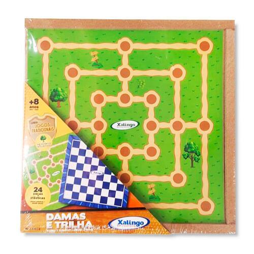 Os jogos tradicionais de tabuleiro são ótimas ferramentas para desenvolver a habilidade estratégica e o raciocínio das crianças. São jogos de fácil compreensão, mas que exigem grande atenção a cada rodada. A Xalingo possui tradição nessa linha, o jogo damas e Trilha é composto por tabuleiros em madeira reflorestada, tinta atóxica e peças plásticas. Os tabuleiros formam uma caixa que pode ser utilizada para guardar as peças.