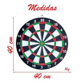 Medidas Aproximadas: Alvo 40 cm de diâmetro, 6 Dardos 11 cm Comprimento.