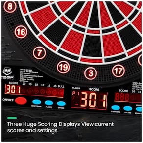 Com uma impressionante variedade de 34 jogos e 355 variações, até 8 jogadores podem participar simultaneamente. Além disso, há a opção de competir contra oponentes controlados pelo computador, oferecendo 5 níveis de dificuldade diferentes para desafiar suas habilidades. O dardo eletrônico pode ser alimentado pelo adaptador de energia incluído, permitindo que você o utilize em qualquer espaço sem ocupar mais espaço do que o necessário.