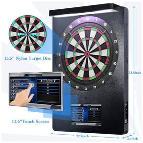 Este alvo de dardo eletrônico é projetado com uma superfície de náilon personalizada, caracterizada por lacunas ultrafinas e orifícios de segmento de travamento, garantindo alta sensibilidade e precisão para reduzir saltos e arremessos perdidos. Com uma tela sensível ao toque de 29 cm, os usuários podem navegar facilmente por vários modos de jogo, configurações e opções com apenas um toque dos dedos.