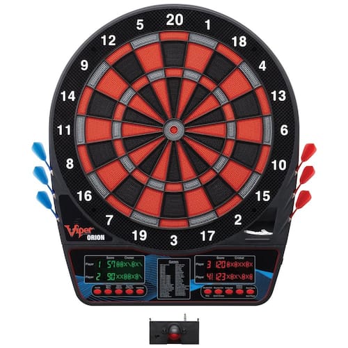 Marca: Viper Material: Plástico Cor: Vermelho e preto Dimensões do Produto: 61,6 cm (Largura) x 52 cm (Altura) x 3,2 cm (Profundidade) Peso do Produto: 2,27 kg Componentes Incluídos: Tabuleiro de dardos eletrônico Formato: Redondo Dimensões da Embalagem: 62,2 cm (Comprimento) x 52 cm (Largura) x 3,8 cm (Altura) Peso da Embalagem: 3,04 kg Modelo: Viper Orion Electronic Soft Tip Dartboard com LaserLite Marker Estilo: Linha de arremesso com laser Marca: Não Informado