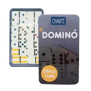 Este conjunto vem com 28 peças feitas em plástico resistente, com espessura de 10mm, proporcionando durabilidade e conforto ao manusear. Acompanha uma prática lata metálica para armazenar e transportar com facilidade, mantendo as peças organizadas e protegidas. Perfeito para momentos em família, jogos com amigos ou como opção educativa para crianças desenvolverem o raciocínio lógico.