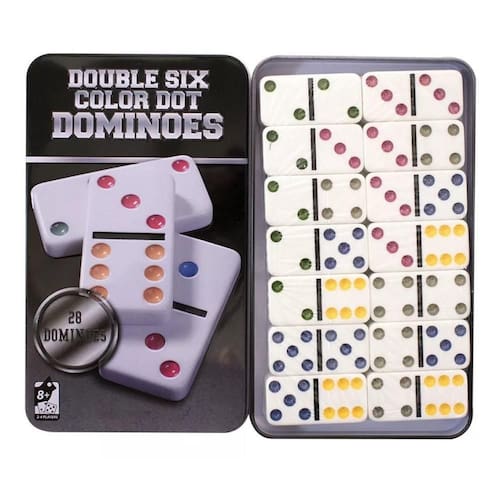Este dominó é de excelente qualidade e acabamento, apresentando peças reforçadas e bem trabalhadas. Possui peças coloridas e acompanha lata decorativa. Um jogo de estratégia para até 4 jogadores, contendo 28 peças. Ideal para momentos de diversão e para presentear.