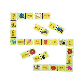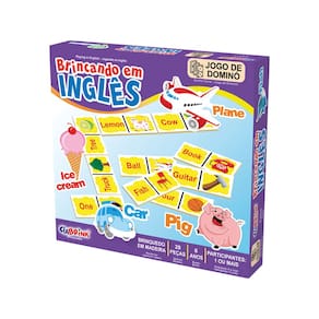Contém 28 peças coloridas e estampadas de 7x3cm com palavras em inglês o seu respectivo desenho.