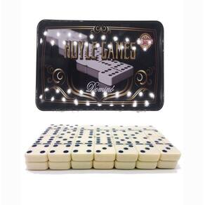 Este dominó é de excelente qualidade e acabamento. Possui pino em metal e acompanha lata decorativa. Um Jogo de estrategia. Ideal para momentos de diversão e para presentear.