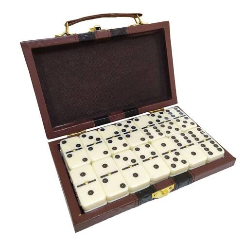Jogo De Dominó Profissional 28 Peças E Maleta 1 Linha Branco Descrição do produto Jogo de dominó profissional, com maleta elegante para Acomodação das peças. Acompanha 28 peças Características: :pedras brancas :comprimento: 49 mm :largura: 24 mm :espessura: 9 mm :ponto de metal no meio de cada peça. Marca; sq Ref sq-3442 Ean: 7899441523888