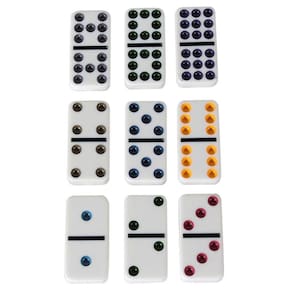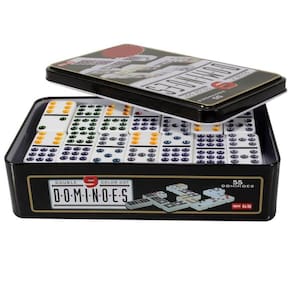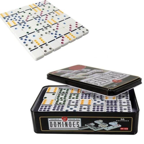 Jogo De Dominós Dominoes 55 Peças E 9 CoresCaracterísticas:Com este lindo Kit contendo 55 dominós, a diversão está garantida Você poderá jogar a qualquer hora e em qualquer lugar, pois é fácil de transportar e guardar. Divirta-se com seus amigos, ou com sua família. 55 pedras com 9 cores. Ótima dica para presentear aquele amigo ou familiar Informações Técnicas:- Material: Peças em Abs Maciço- Peso Total Aproximado: 980 gramas- Medidas Aproximadas Lata: 18,5cm C x 11,5 L x 5cm A- Peso Peça: 16 gramas- Medida Peça: 5cm x 2,5cm x 1cm - 55 Peças Itens Inclusos:- 01 Dominó 55 Peças- Lata
