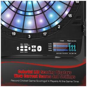 Com uma área de alvo de 34,3 cm e um display colorido, você pode acompanhar as pontuações a até 3 metros de distância, mesmo em ambientes escuros. Suporta exibição simultânea da pontuação de Cricket de até 4 jogadores no estilo XO, além de pontuação automática e comandos de voz para uma experiência ainda mais emocionante.