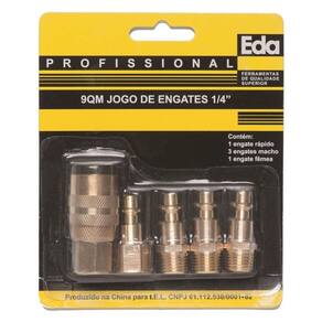Jogo De Engate Rápido Com 5 Peças - 9qm - Eda Jogo de Engate Rápido com 5 Peças - 9QM - EDA Descrição: Os engates rápidos são utilizados como conexões práticas entre a magueira do compressor de ar e os equipamentos pneumáticos, facilitando sua vida e agilizando. Com material de alta qualidade ela garantirá um excelente desempenho!