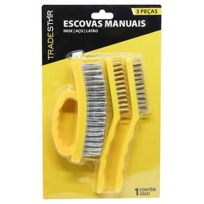 O Jogo de Escovas Mix 3 Peças da Tradestar é a solução completa para suas tarefas de limpeza e preparação em diversos materiais. Composto por escovas de aço, latão e inox, este conjunto oferece versatilidade e eficiência, tornando-o essencial para suas atividades de manutenção e restauração. Descrição Técnica: 3 Peças - 1 em Inox / 1 em Aço e 1 em Latão O conjunto inclui 3 escovas: aço, latão e inox, garantindo resistência e durabilidade. Design ergonômico e prático, permitindo o uso em diferentes superfícies e áreas. Tamanhos variados para atender às diversas necessidades de limpeza e preparação. Utilidade de Uso: Limpeza Pesada: Escova de aço é ideal para remoção de ferrugem e sujeira incrustada. Limpeza Delicada: Escova de latão é perfeita para limpeza em superfícies sensíveis e delicadas. Durabilidade e Resistência: Escova de inox é indicada para limpeza em áreas que requerem resistência à corrosão. Preparação de Superfícies: Essencial para preparar materiais antes da pintura, adesivação ou revestimentos. Manutenção Geral: Ferramenta versátil para limpeza e manutenção em equipamentos e peças. Adquira agora o Jogo de Escovas Mix 3 Peças da Tradestar e tenha em mãos uma solução completa para suas tarefas de limpeza e preparação. Sua qualidade superior e diversidade de materiais tornam-no a escolha perfeita tanto para quanto para trabalhos de bricolagem em casa. Qtde por embalagem - 1 unidade Quantidade por embalagem 1 Unidade 90 dias após a compra. Imagens meramente ilustrativas As tonalidades da cor do produto podem sofrer alterações de acordo com a tela que estiver usando para visualização. Vantagens de Comprar com a JJC Ferramentas: Experiência e Confiança: Somos especialistas em ferramentas e acessórios, garantindo produtos de qualidade e desempenho superior. Variedade e Qualidade: Oferecemos uma seleção abrangente de ferramentas, sempre priorizando a durabilidade e eficiência. Atendimento Personalizado: Nossa equipe está pronta para ajudá-lo, oferecendo suporte técnico e orientações precisas. Satisfação Garantida: Se por algum motivo não ficar satisfeito, oferecemos política de devolução sem complicações. Marca: Não Informado