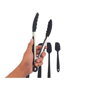 Jogo De Espátulas e Pegador Para Salada Em Silicone Resistente Altas Temperaturas Não Risca Panela Cor: Preto Características: