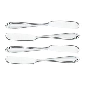 Jogo de Espátulas Laguna Manteiga Geleias Doces Patês 4 Peça KIT Laguna Passar manteiga em um pão quentinho é maravilhoso, e não tem nada melhor que iniciar o dia assim. E para facilitar a sua rotina, a Espátula para Manteiga Tramontina Laguna em Aço Inox é perfeita, pois possui acabamento em brilho, detalhes no cabo e pode ser levada diariamente ao lava-louças.
