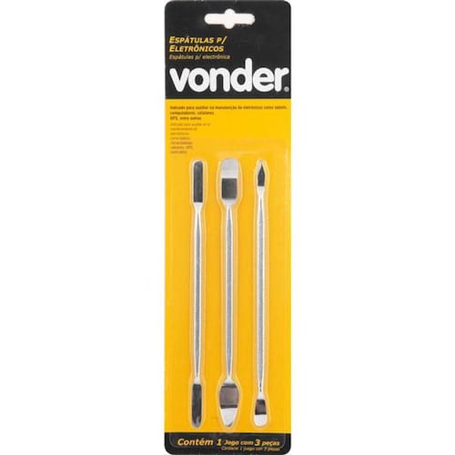 Composto por três diferentes modelos de espátulas com seis diferentes pontas de utilização. Possui ranhuras no corpo para maior segurança no uso.
