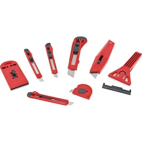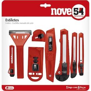 Jogo De Estiletes Cabo Plástico Com 8 Peças - Nove54 Conteúdo da embalagem 1 Jogo de estiletes, composto por 8 peças, sendo: 3 estiletes 9 mm, 1 estilete 18 mm, 1 estilete trapezoidal, 2 raspadores e 1 cortador de papel Aplicações e dicas de uso Indicado para fazer cortes em geral e pequenas raspagens DETALHES TÉCNICOS