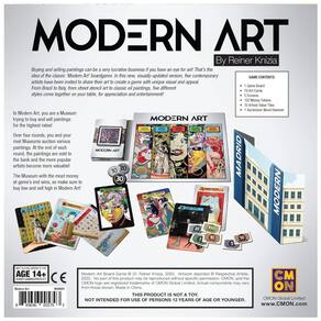 Para 3 5 jogadores. Leilões alternados existem cinco tipos diferentes de leilões no jogo. Cada um requer uma estratégia única se o jogador espera conseguir o melhor negócio. Valor de o valor do trabalho de um artista é determinado por quantas de suas pinturas são vendidas. Quanto mais populares eles são, mais dinheiro seu trabalho pode ser vendido. Beleza real a arte moderna apresenta o trabalho de alguns dos artistas mais talentosos do mundo. Cada peça que vai a leilão é de tirar o fôlego Marca: Não Informado