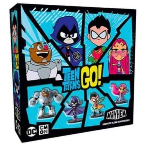 Os Jovens Titãs lutam entre si em Teen Titans GO Mayhem, com cada equipe correndo para ser a primeira a coletar 5 pontos de vitória VP. Todos os Titãs têm um poder que ataca diretamente seus oponentes, seja através de um ataque ou através de fichas de fogo. As fichas de fogo causam dano igual ao dado de caos, assim como um ataque normal, mas causam dano no início de cada rodada. Quando um personagem é nocauteado, ele é removido do tabuleiro e seu oponente ganha PVs, com o personagem nocauteado retornando para jogar na próxima rodada. Quando você não está lutando, você usa o trabalho em equipe para completar missões do GO especial baralho para uma chance de ganhar PVs. EXCLUSIVO KICKSTARTER QUE INCLUI CORE E PROMOS Marca: Não Informado