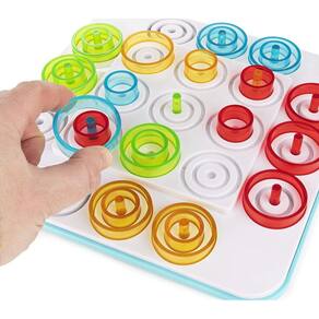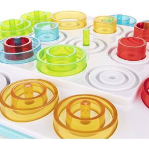 PRODUTO INTERNACIONAL. Se você é um amante de desafios inteligentes, precisa experimentar o novo jogo de estratégia Otrio! Para ganhar, você precisa obter três peças da sua cor em uma fileira com base no tamanho semelhante, alinhadas em ordem ascendente ou descendente, ou dentro do mesmo espaço que três peças concêntricas