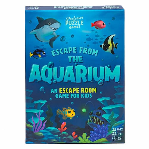 Professor PUZZLE | Escape from The Aquarium - Escape Room | Jogo de estratégia | Idades 8 a 11 | 1-6 jogadores | Tempo de jogo de 60 minutos - Inclui 11 quebra-cabeças diferentes de lógica, número e observação - Um jogo de sala de fuga para crianças - Jogue em equipe ou individualmente - Ilustrações divertidas e coloridas e conteúdo educacional extra - Formato de jogo envolvente com um tempo de execução de 60 minutos