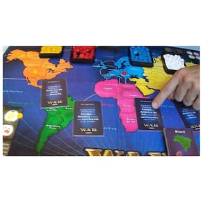 O Jogo de Tabuleiro War vem com tudo o que você precisa para jogar: um tabuleiro, conjuntos de fichas de cores diferentes, caixas plásticas com tampas, cartas-objetivos, cartas de territórios, dados vermelhos, dados amarelos e um manual de instruções completo.